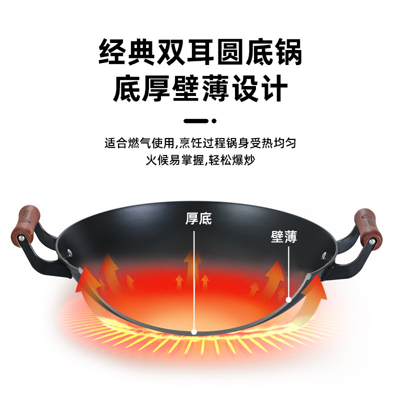 【经典款】中康精铁炒锅铁锅氮化防锈无涂层炒锅电磁炉燃气灶通用