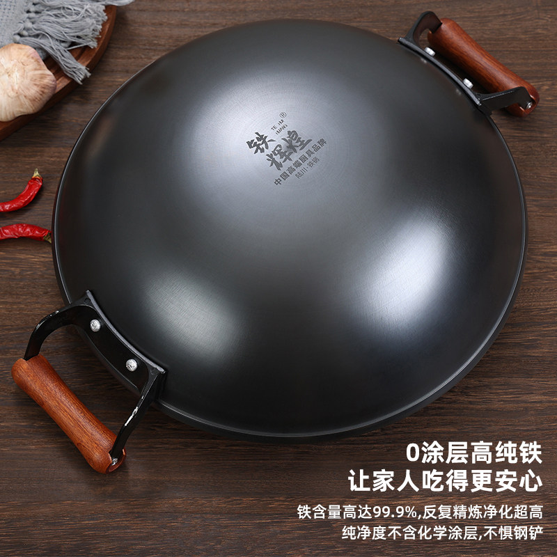 陆川生铁铸铁锅官方旗舰老式炒菜锅双耳圆底不粘无涂层燃气灶适用