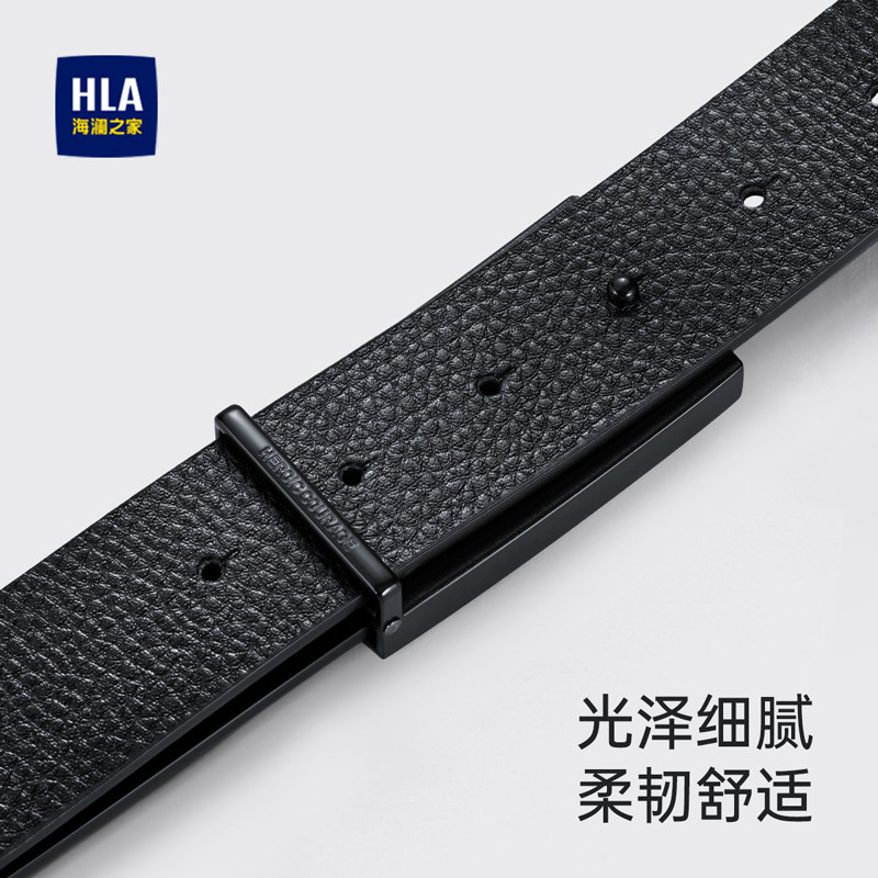 海澜之家真牛皮板扣腰带男2025新款商务休闲平滑扣皮带年轻人裤带