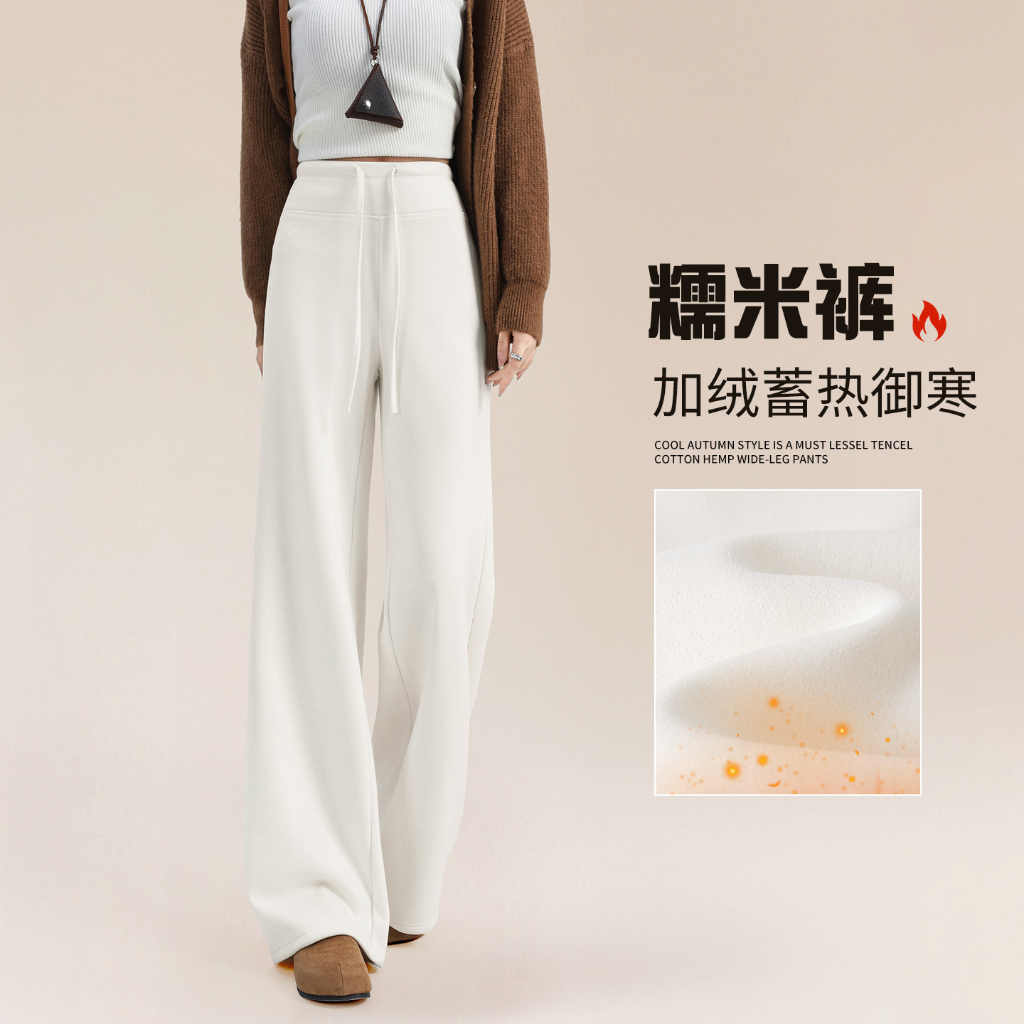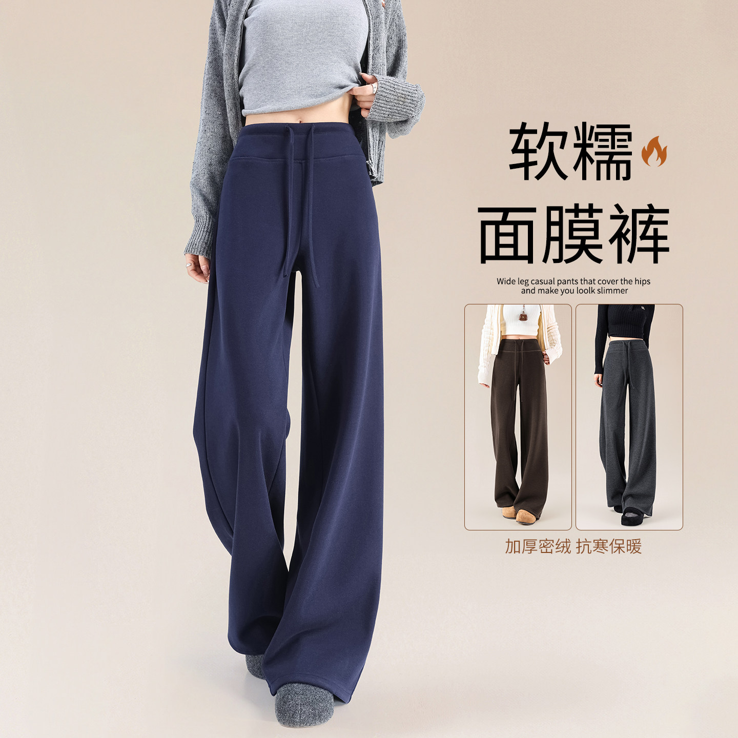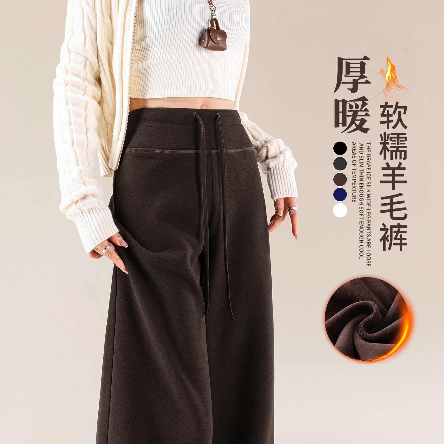 糯米裤女羊羔绒垂坠感软糯加绒加厚秋冬韩系慵懒松弛感阔腿裤TB
