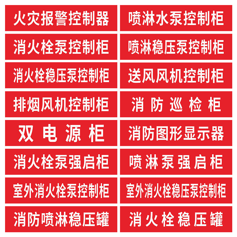 消防控制柜标识牌喷淋水泵消火栓稳压泵防火卷帘排烟风机双电源控制柜巡检强启柜箱提示消防安全标示贴纸定制