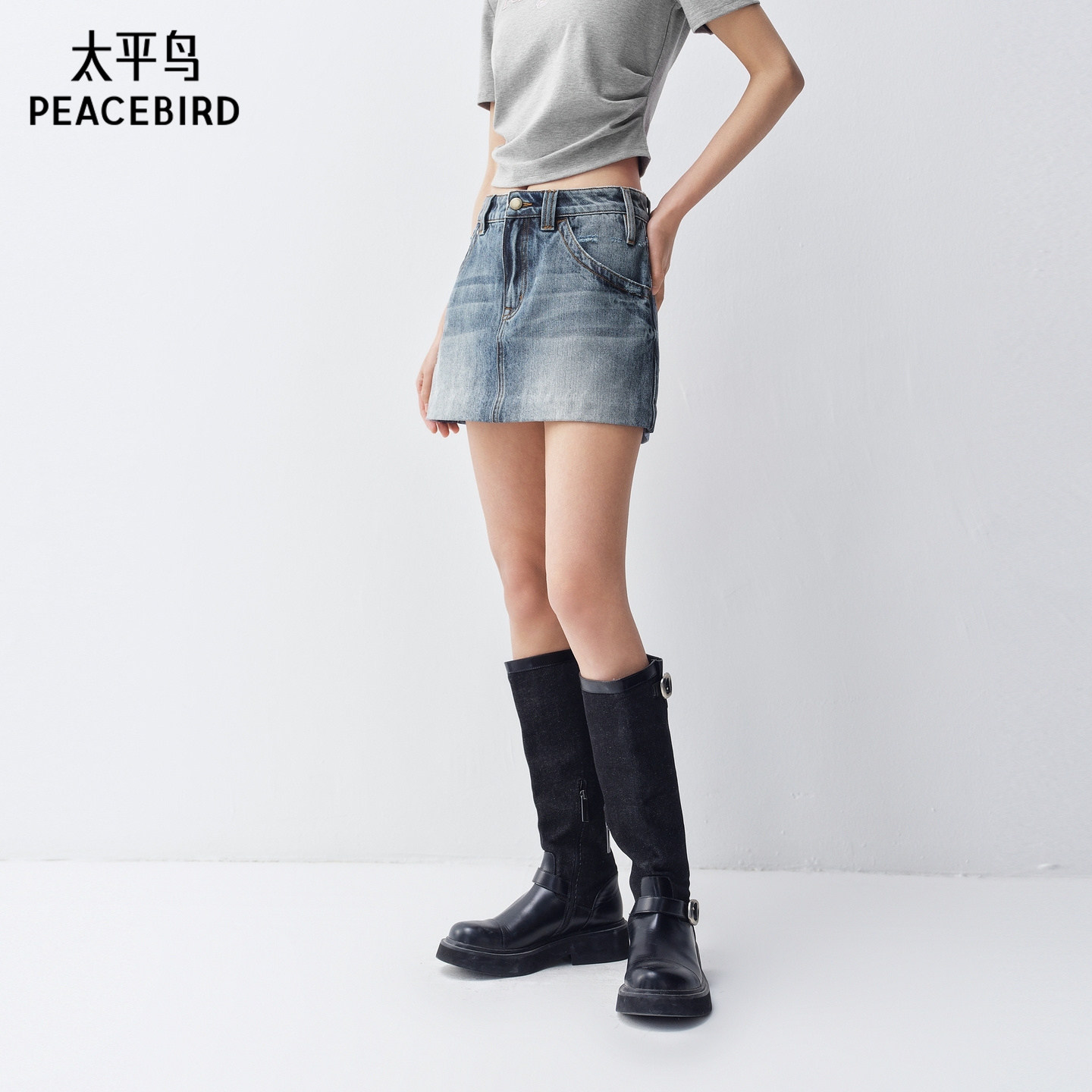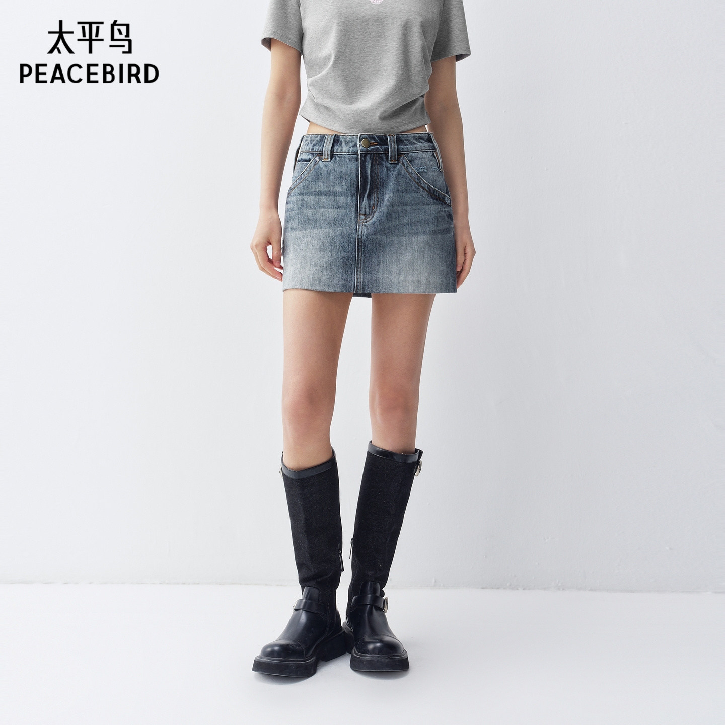 【商场同款】太平鸟2026夏装新款蓝色牛仔短裙半身裙女A3HEG2153