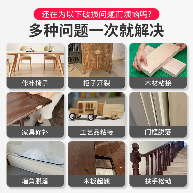 木工胶水粘木头专用强力粘家具木材红木万能修复沾实木地板椅子凳子桌子免打孔透明手工diy白乳胶粘合剂快干