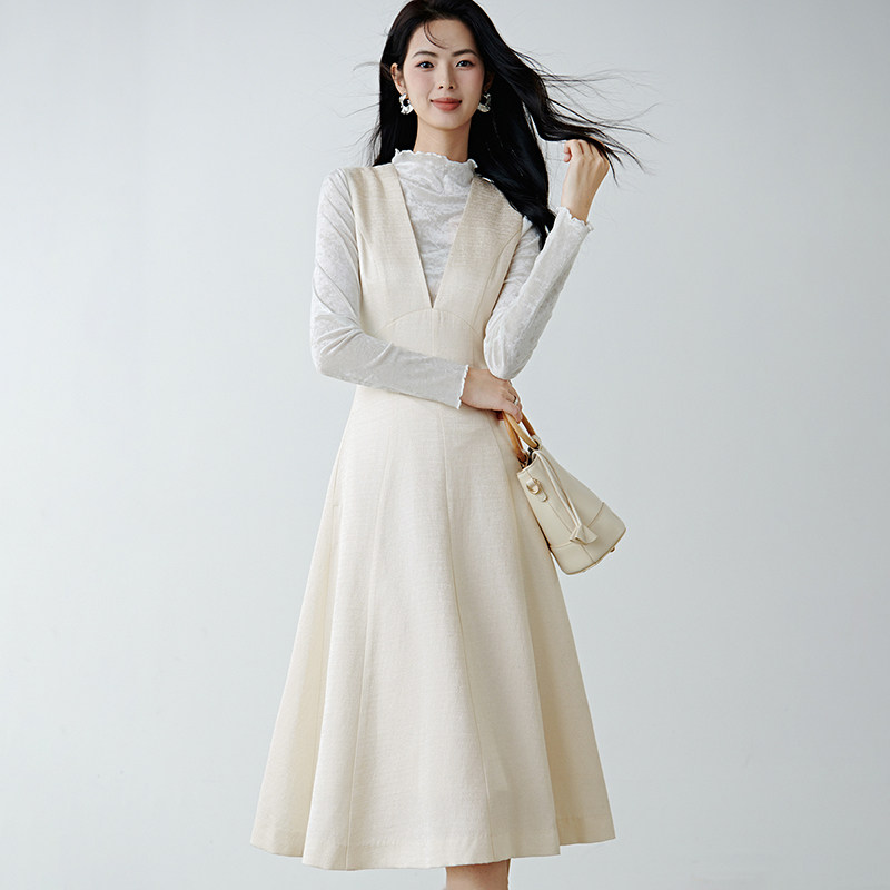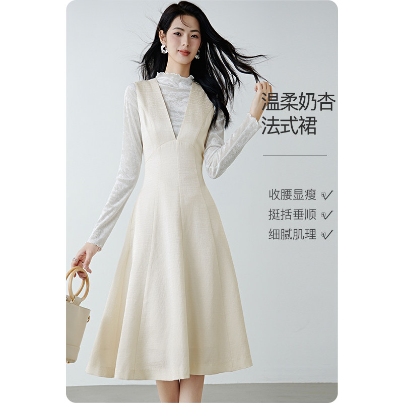 晚白2026年春新款简约优雅V领裙子收腰显瘦时尚百搭无袖连衣裙