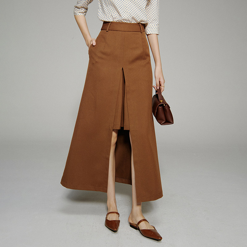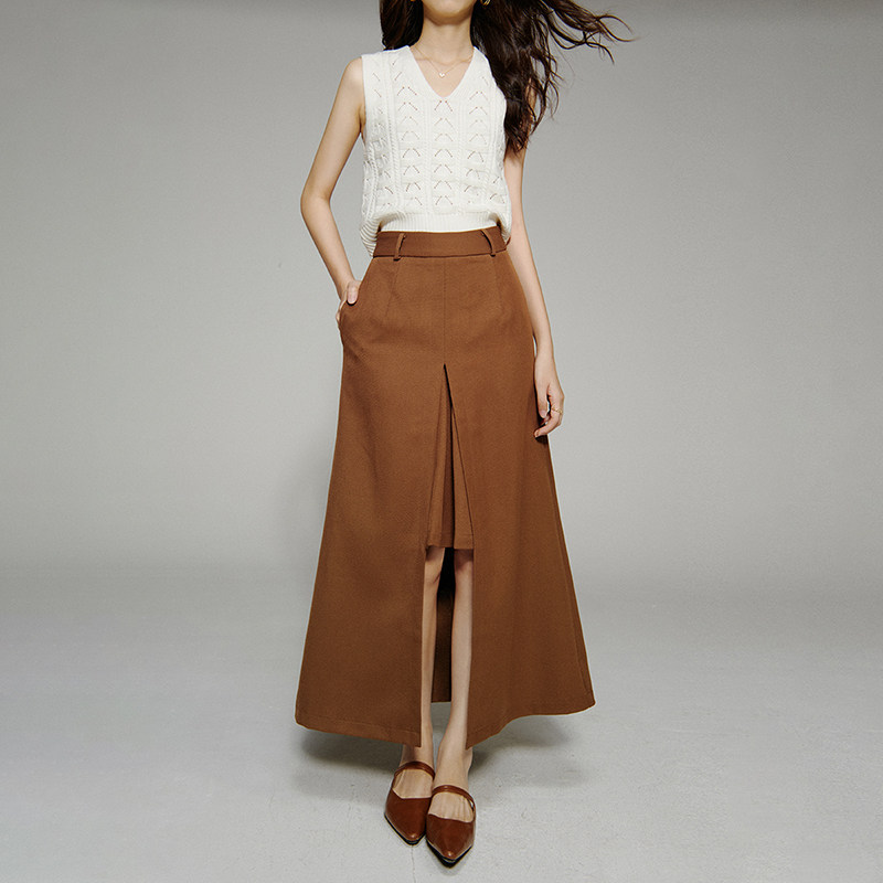 COCOBELLA设计感高腰通勤OL遮胯半身裙西装裙过膝毛呢长裙HS613-2