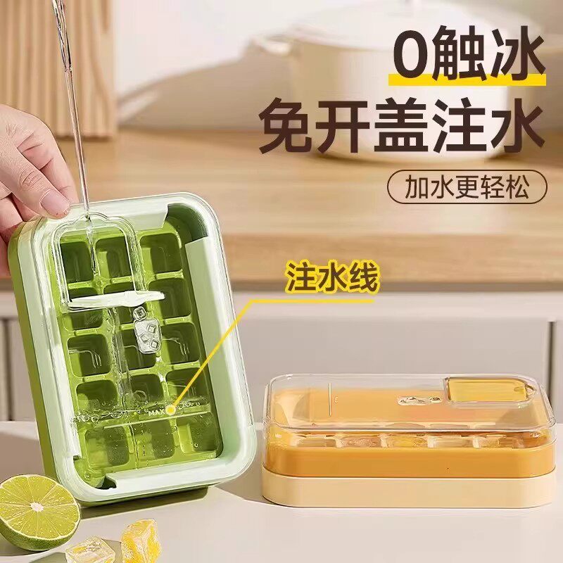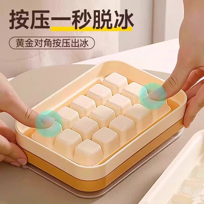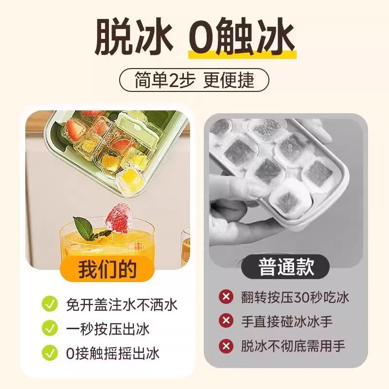 新食品级冰块模具按压冰格家用冰箱自制冰块储存盒带盖冻冰块神器