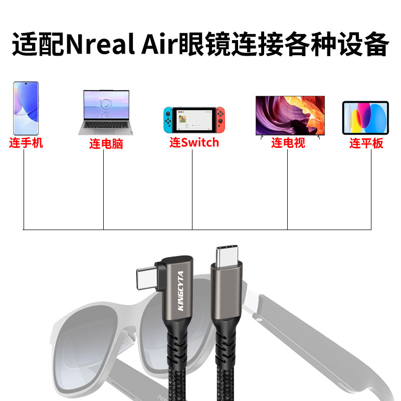 英西达 适用于Nreal Air智能眼镜同屏线AR串流线nrealair连手机平板电脑笔记本数据线充电线DP TYPE-C传输VR