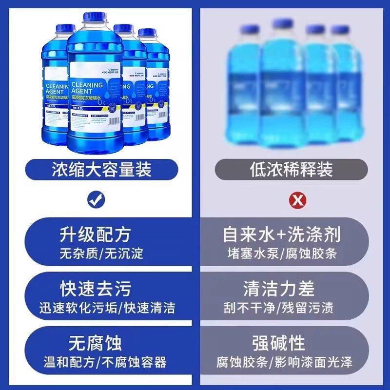 德国原液汽车玻璃水2L装防雨镀膜去油膜虫胶强力清洁除垢冬季防冻