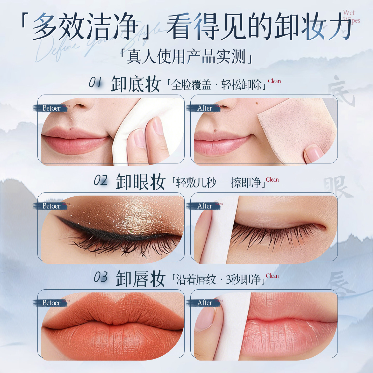 眼唇卸妆湿巾独立包装一次性脸部三合一温和无刺激清洁便携旅行装