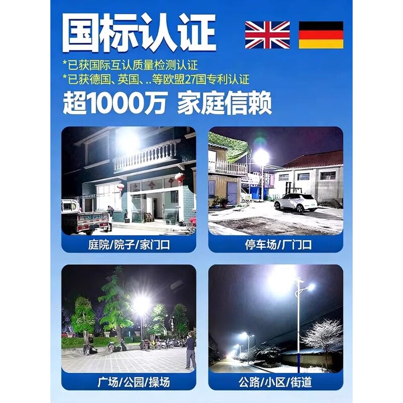 太阳能灯户外灯庭院灯超亮农村1000W新型防水家用室内路灯照明灯