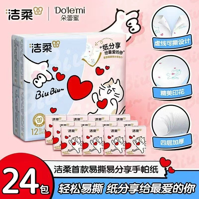 洁柔手帕纸分享式迷你4层7片24包易撕易分享便携餐巾纸外出旅游