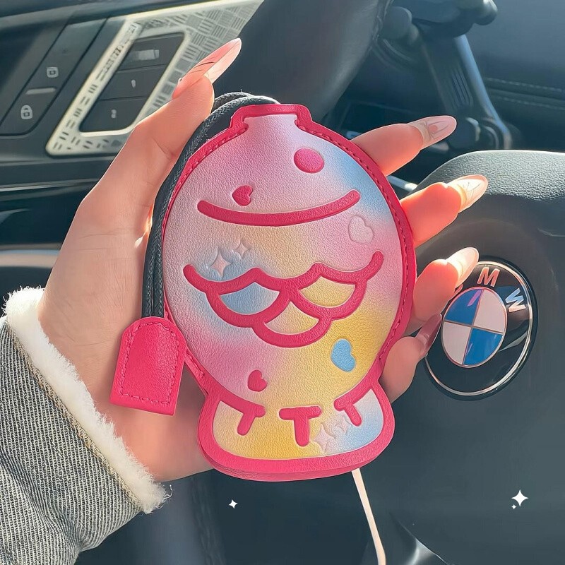 彩色锦鲤钥匙包敞口抽拉式鲷鱼烧车钥匙扣保护套大容量抽带通用