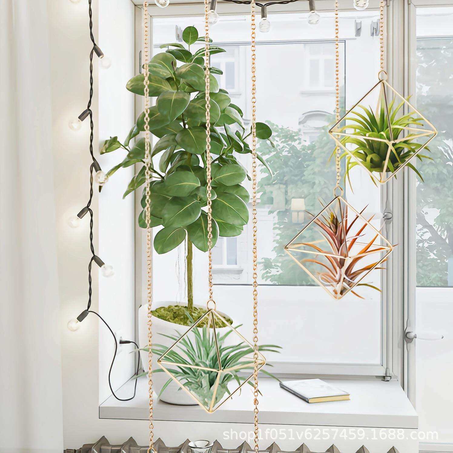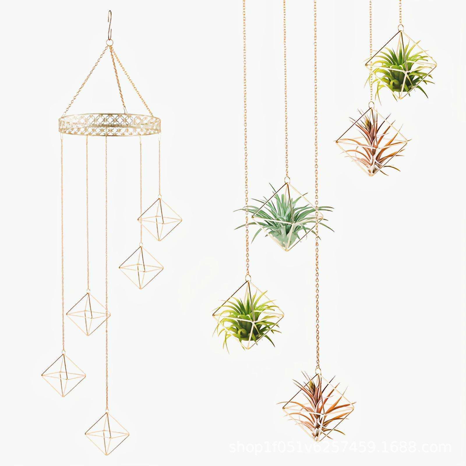 新款空气凤梨风铃式挂饰吊饰空中几何植物挂架植物花盆电镀金色