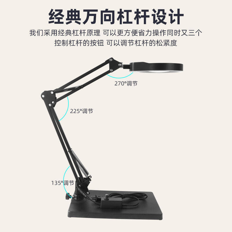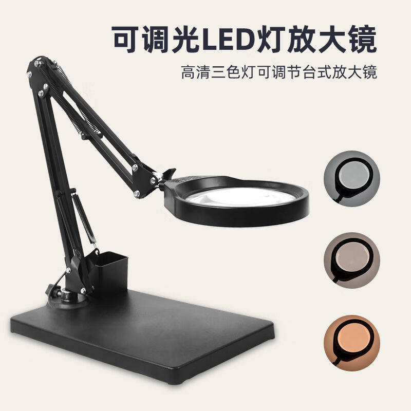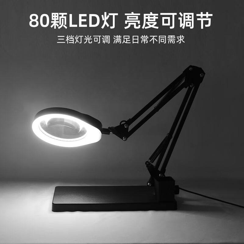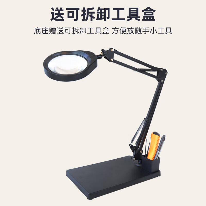金恩支架台式放大镜带LED灯可调亮度10/20倍高清高倍手机电子维修