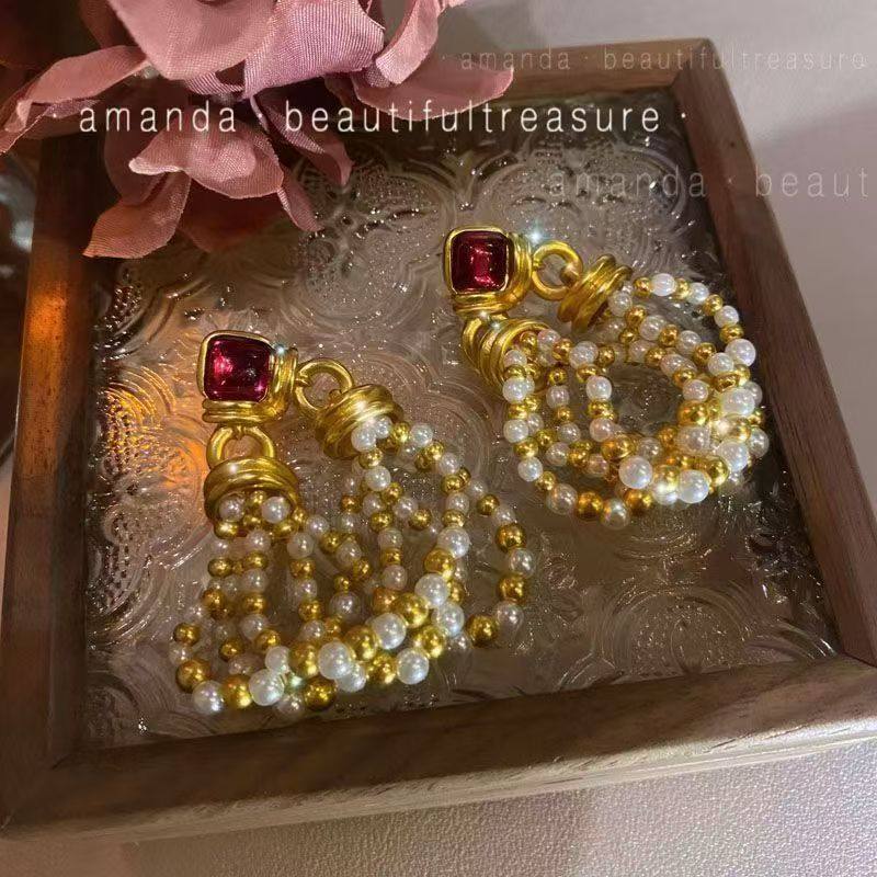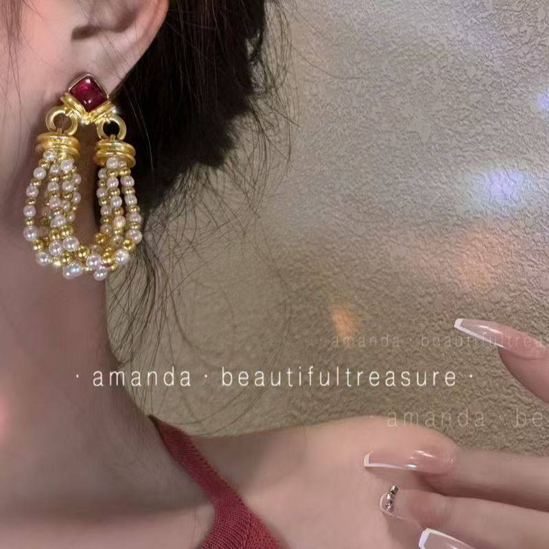 中古夸张复古宫廷珍珠流苏大耳环港风法式高级感欧美小众耳钉蝴蝶