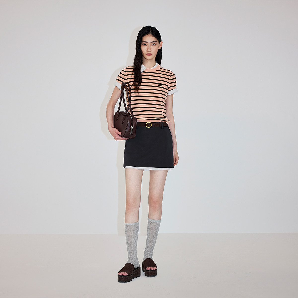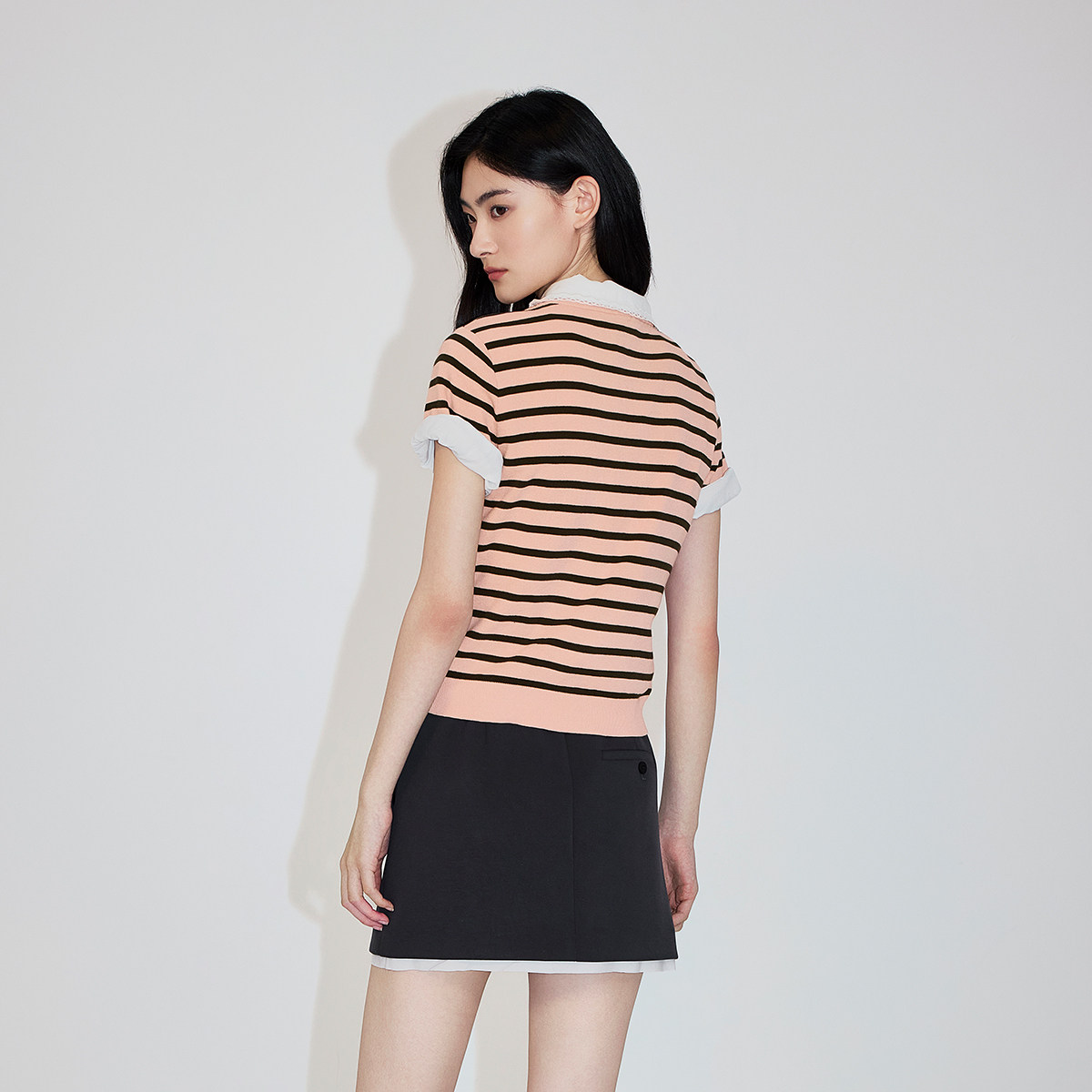 【新品】OCHIRLY欧时力 短袖针织衫2026春夏高捻棉纱时尚条纹上衣