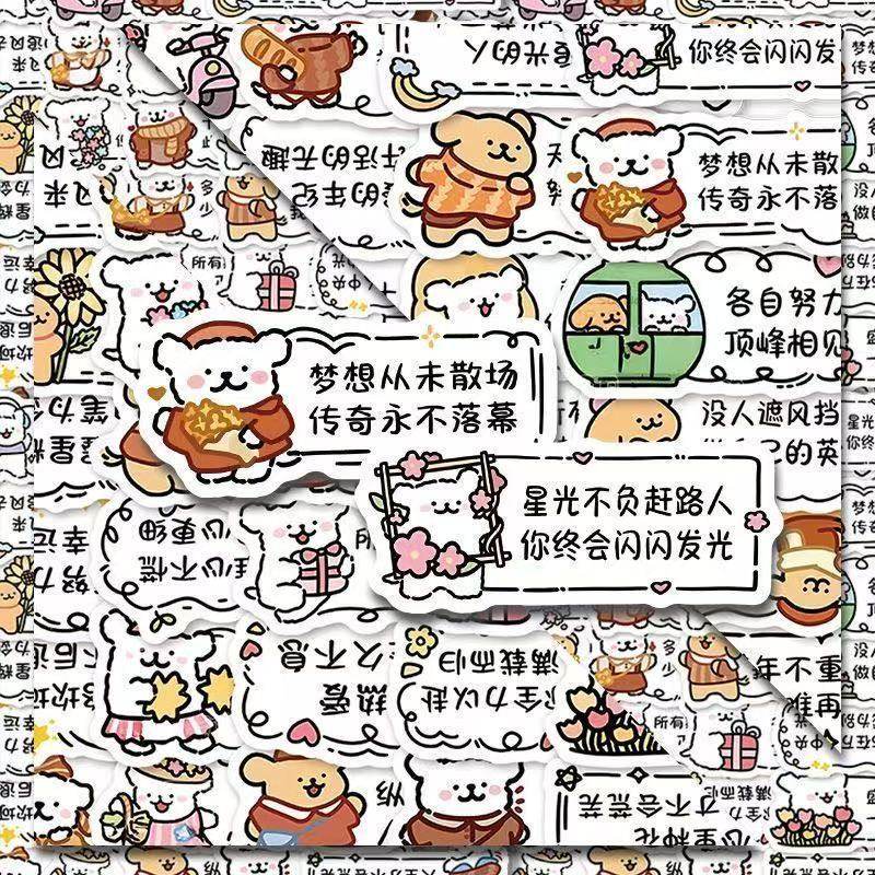 62张可爱文字文案激励线条小狗贴纸装饰治愈励志手账贴画防水ins
