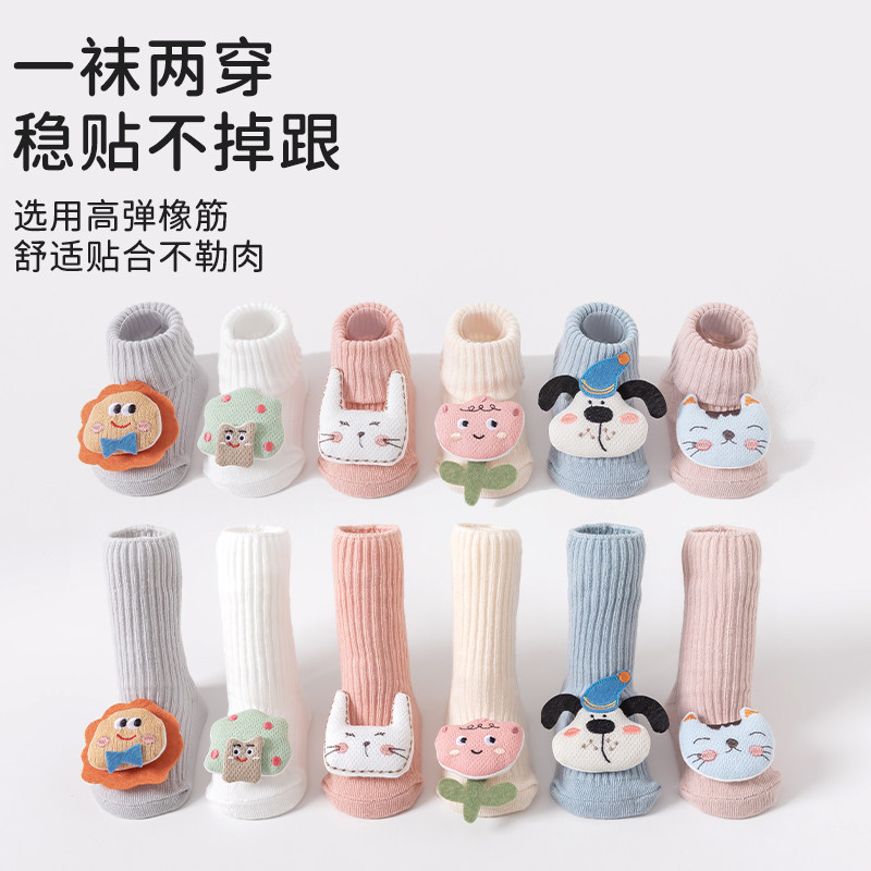 婧麒婴儿袜子春秋季新生儿宝宝棉袜0一1岁男女宝宝防滑学步地板袜