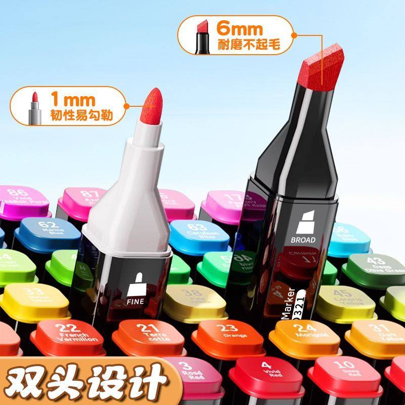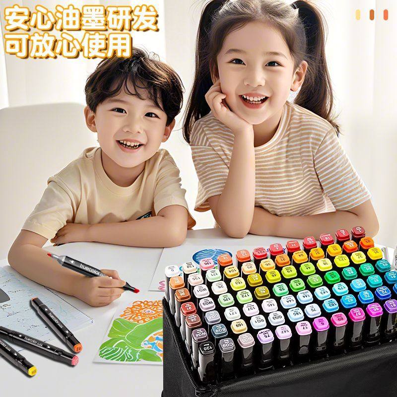 真彩油性马克笔美术专用双头48色小学生手绘动漫设计美术绘画60/80/120/168色儿童画笔粗头涂鸦水彩笔套装36