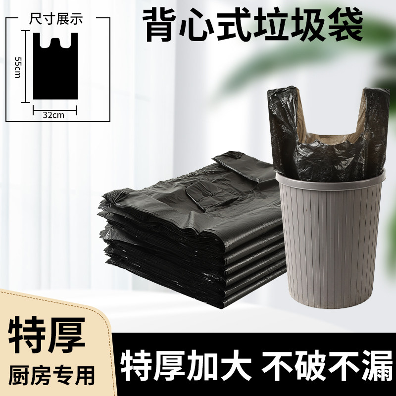 特加厚背心式垃圾袋家用厨房手提式收黑色大号拉圾塑料袋湿厨余袋