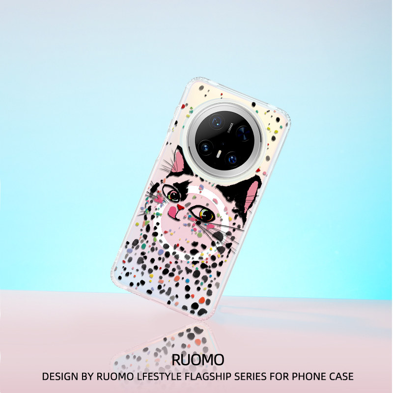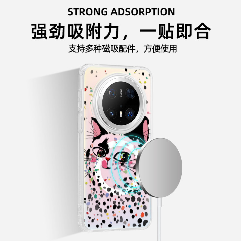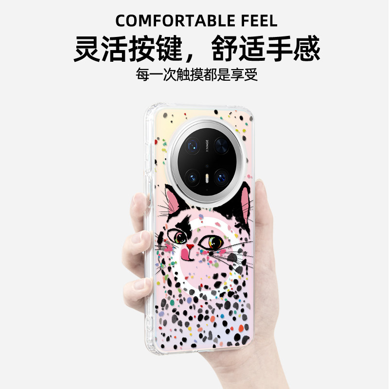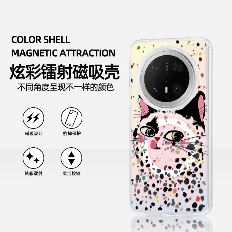 若墨适用华为Mate70pro手机壳Mate60pro新款Pura70女镭射磁吸带挂绳P60卡包创意支架夏天彩色渐变猫咪防摔