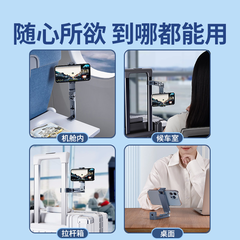 魔术夹子手机支架乘高铁飞机固定器旅行可折叠便携式拍摄多功能金属架子桌面拉杆行李箱支撑通用小巧迷你