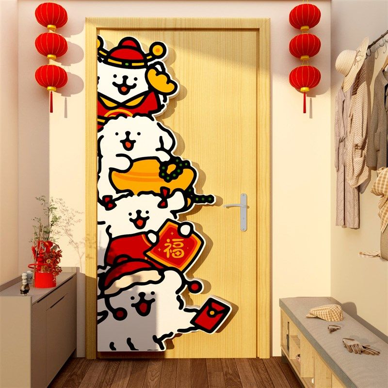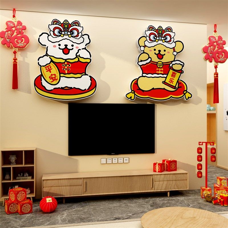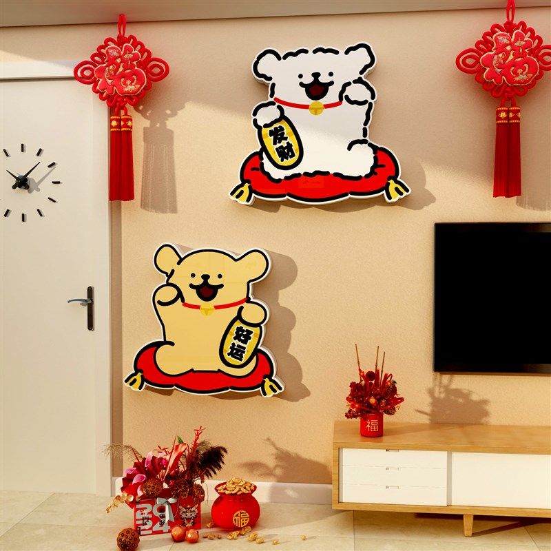 过新年装饰挥春节氛围布置线条小狗电视机背景墙福字挂件门贴纸画