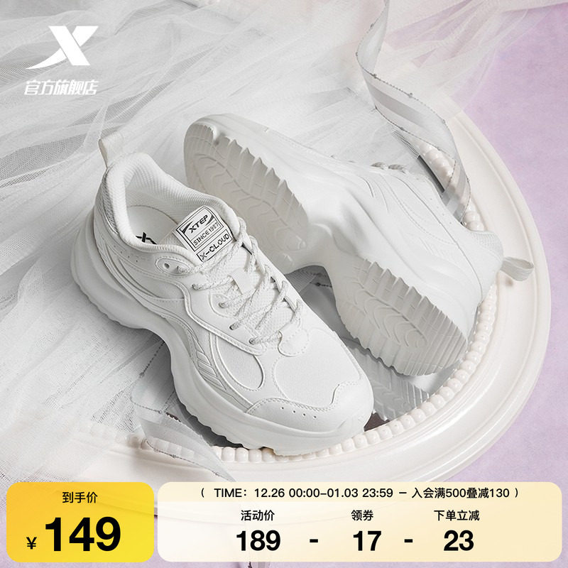 特步云朵丨休闲鞋女鞋冬季新款革面百搭厚底老爹鞋轻便增高运动鞋