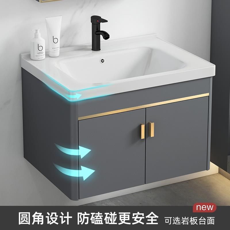 太空铝现代浴室柜卫生间洗漱台陶瓷一体小户型洗手盆洗脸盆柜组合