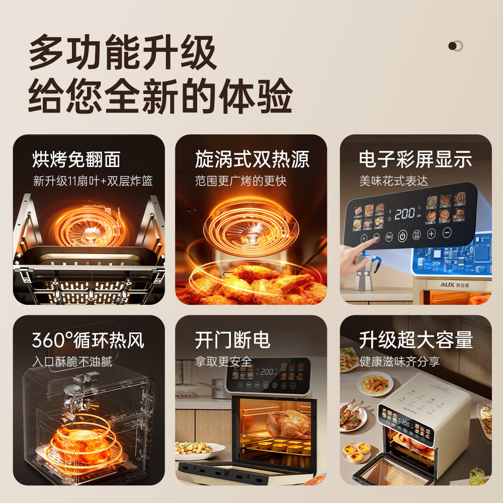 奥克斯电烤箱家用2025新款烘焙专用炸多功能空气蒸烤微炉三合一