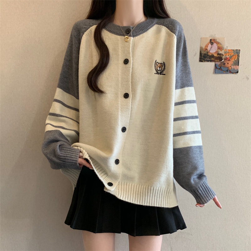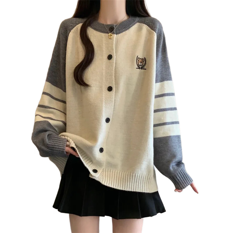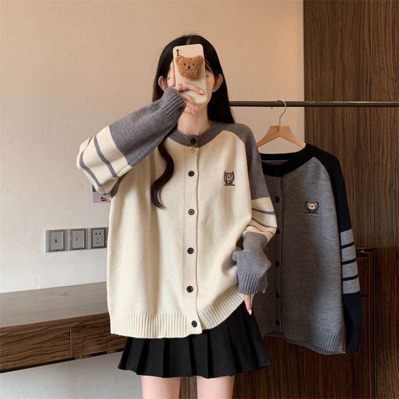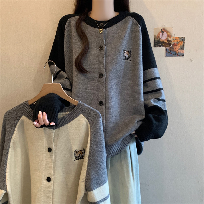 婧麒孕妇装毛衣2025新款秋冬季圆领百搭休闲袖子拼色针织开衫外套