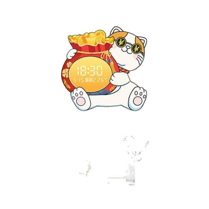 新款招财猫现代轻奢数显夜光数字led电子时钟客厅餐厅卧室装饰画