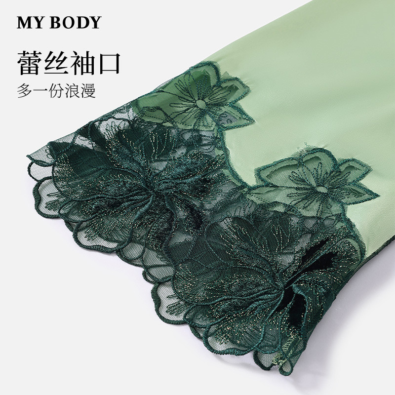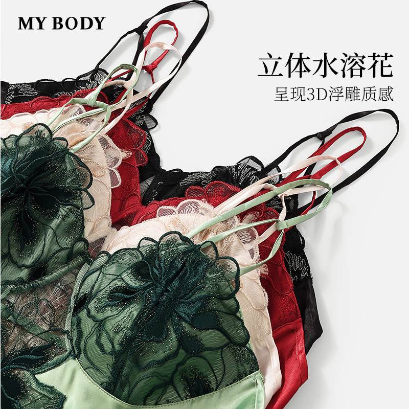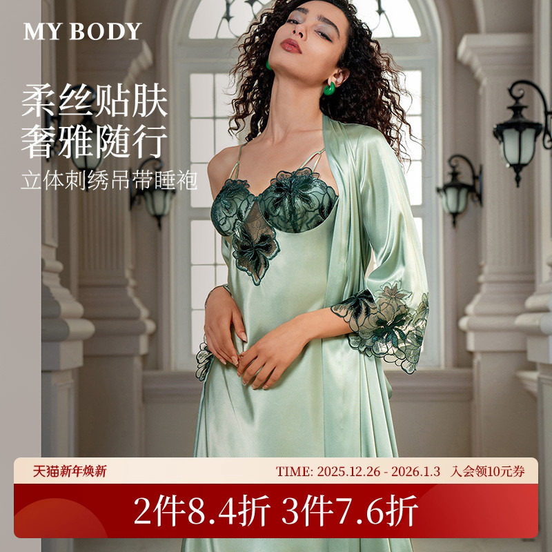 商场同款MYBODY新款立体水溶花刺绣性感蕾丝两件套吊带裙女士睡袍
