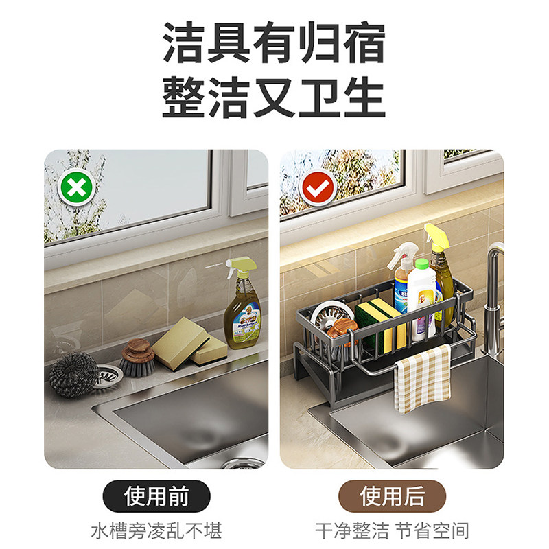 厨房置物架沥水架抹布收纳水龙头洗菜池洗碗水槽用品架收纳神器