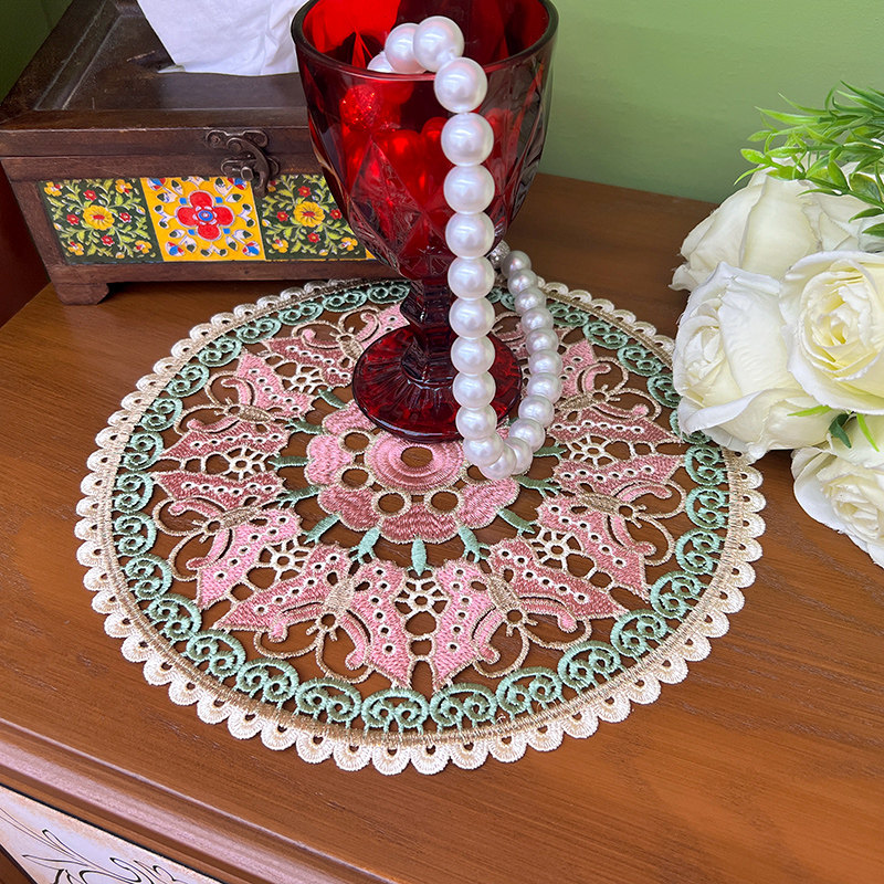 【买一发二】复古镂空绣花装饰垫蝴蝶绣花餐垫杯垫花瓶餐盘垫子