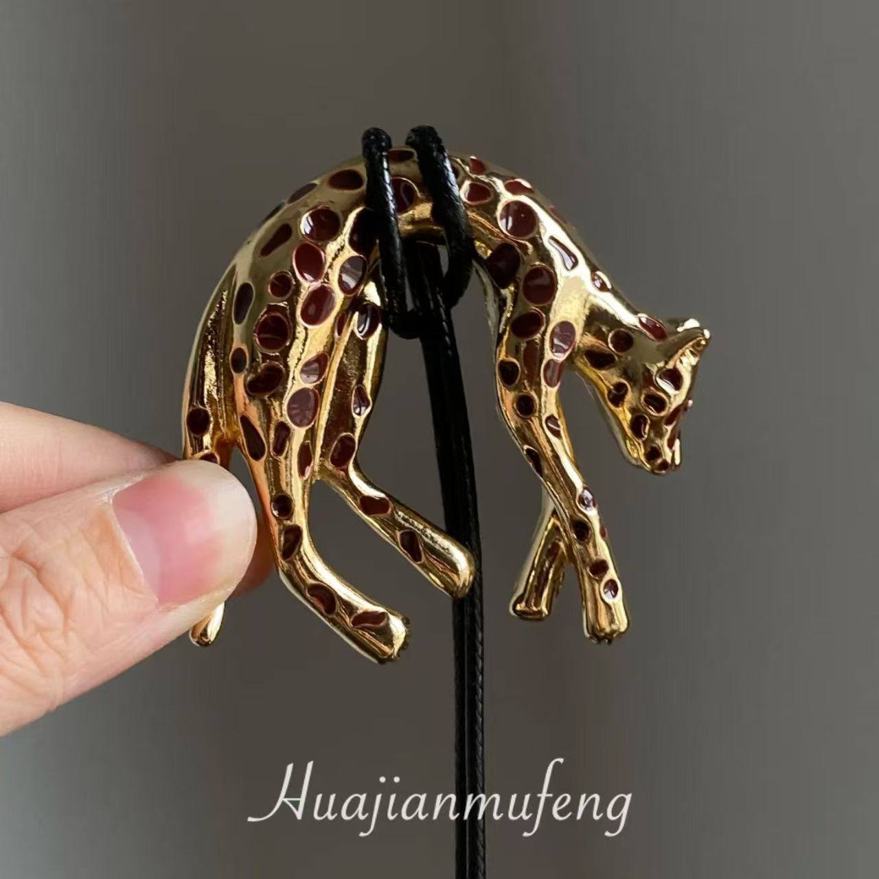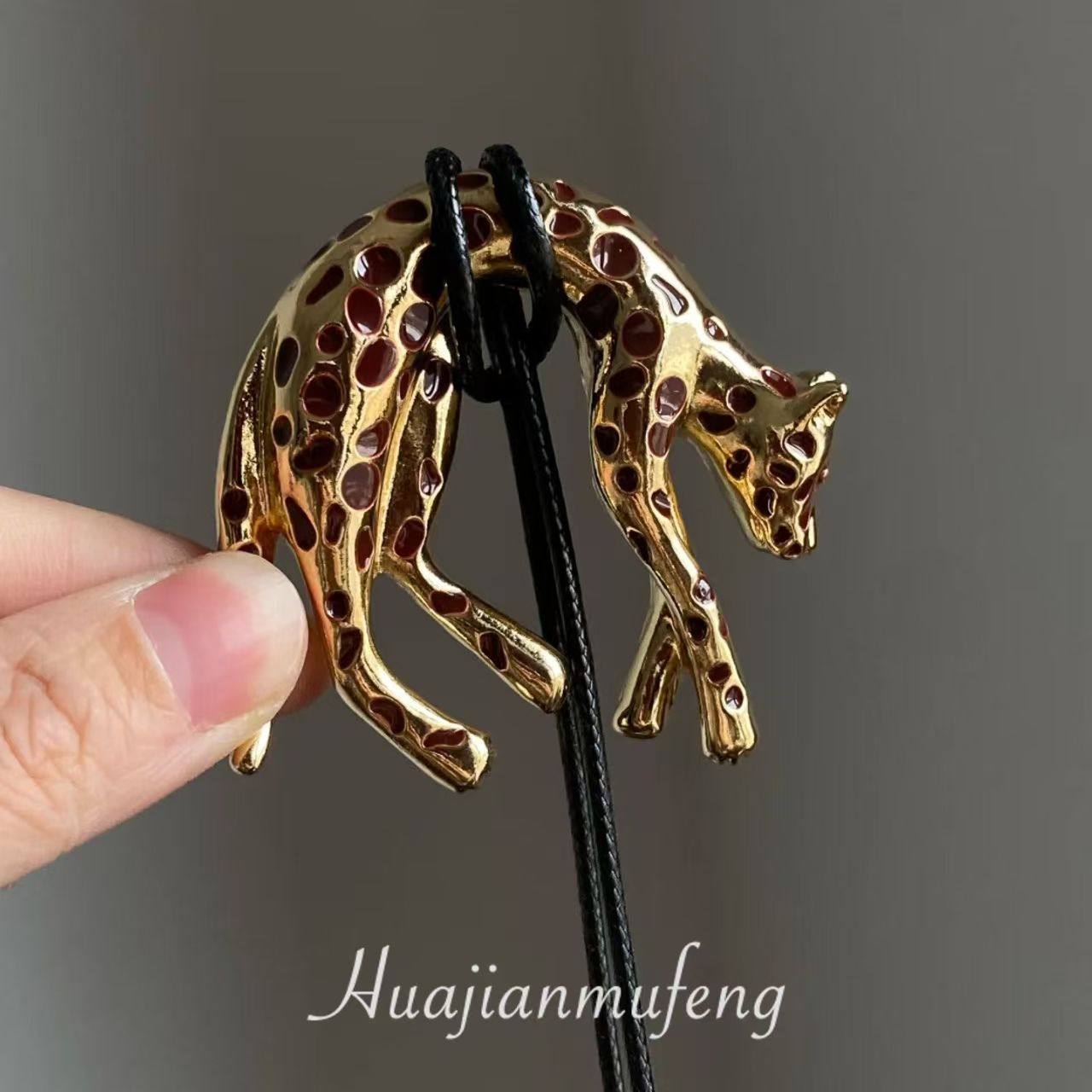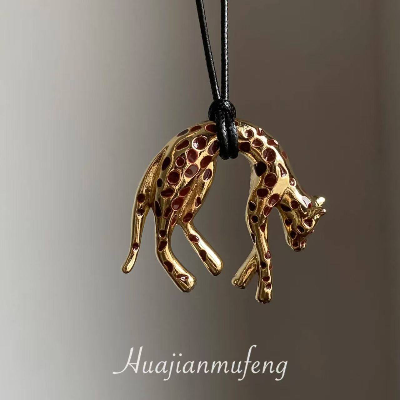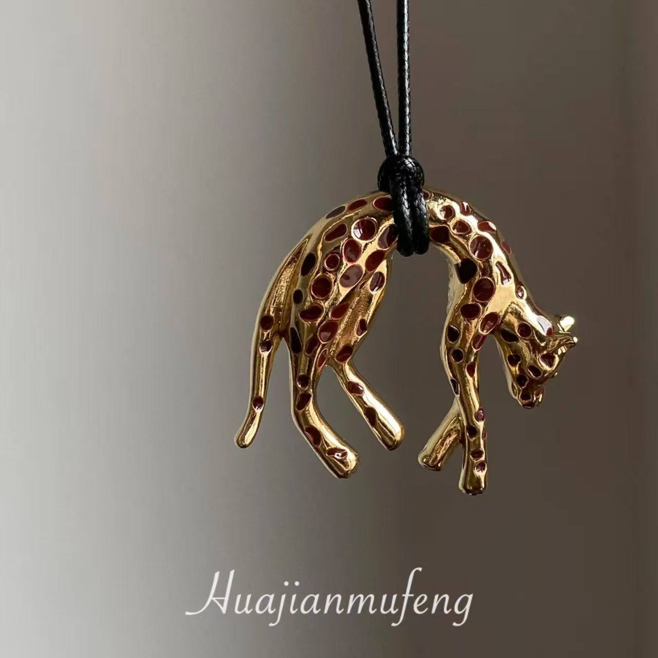 独特野性魅力~黑金钱豹吊坠项链女时髦老钱风长款毛衣链辣妹配饰