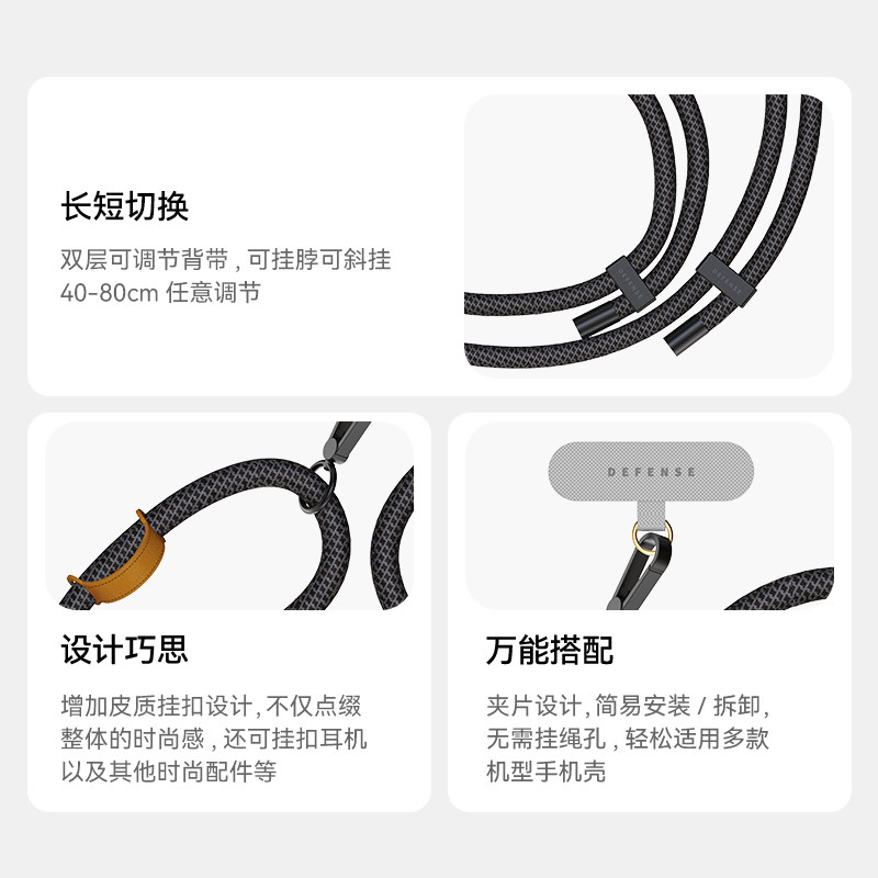 决色百搭黑金马术手机挂绳多功能斜挎肩带潮流配件适用苹果华为小米vivo手机壳钥匙链耳机通用百搭