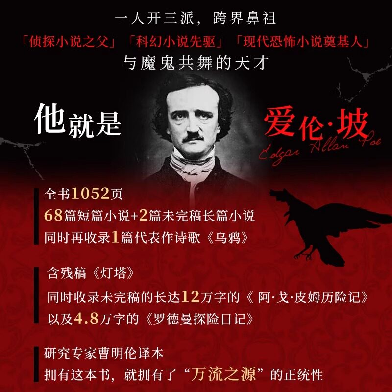 官方正版乌鸦幽冥之羽特装典藏插图版首套爱伦坡简体中文小说全集侦探科幻现代恐怖短篇文学