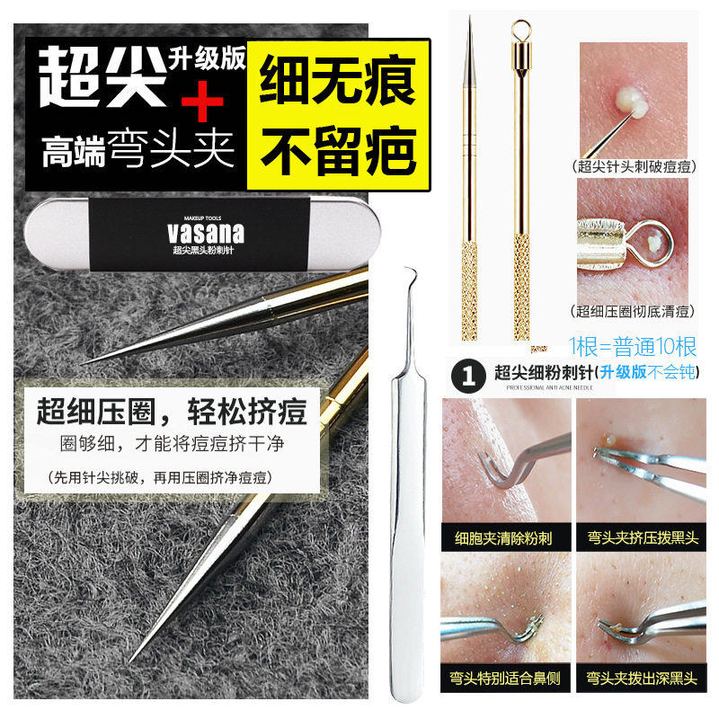 VASANA超尖粉刺针去黑头神器工具组美容院专用挤痘闭口粉刺处理套