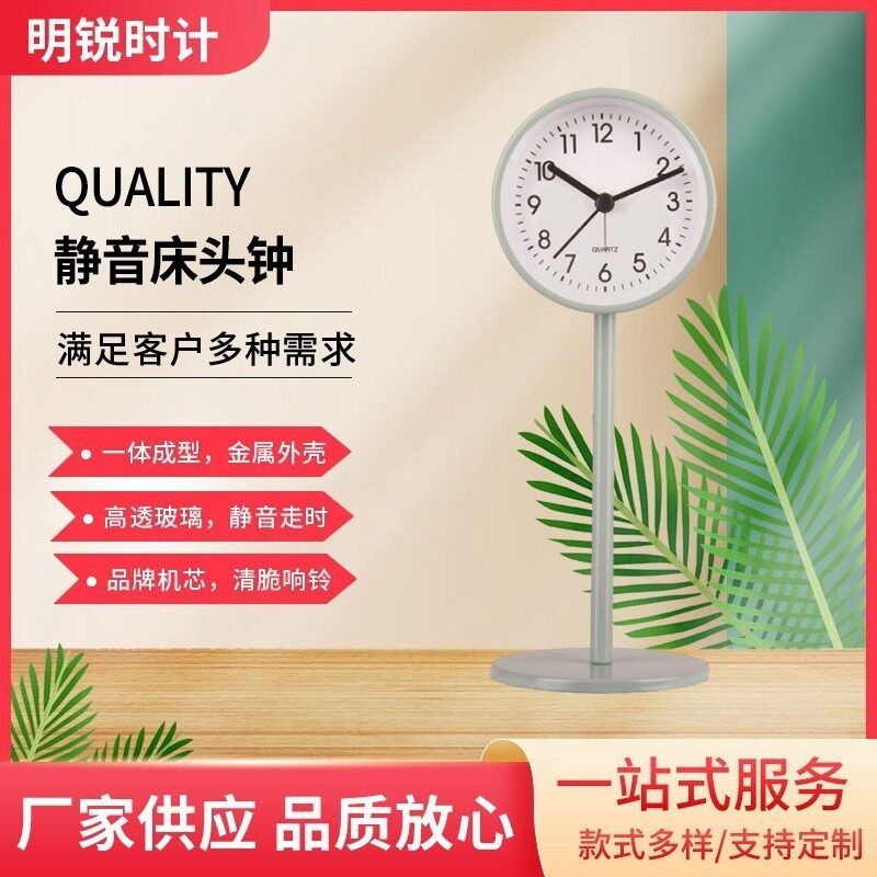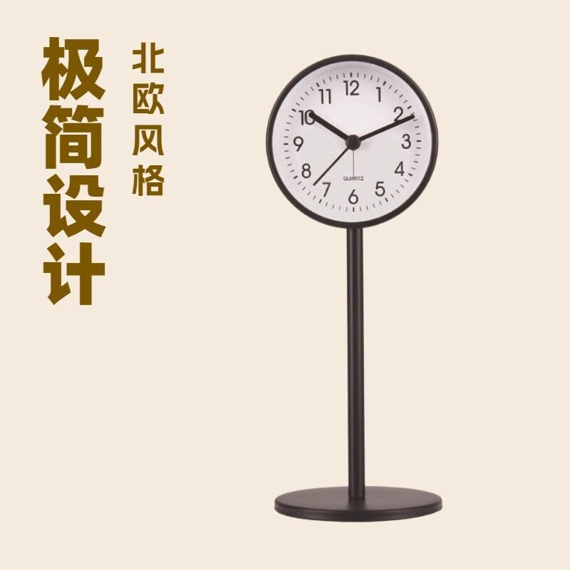 金属闹钟桌面钟表极简北欧风静音石英座钟学生书桌摆件