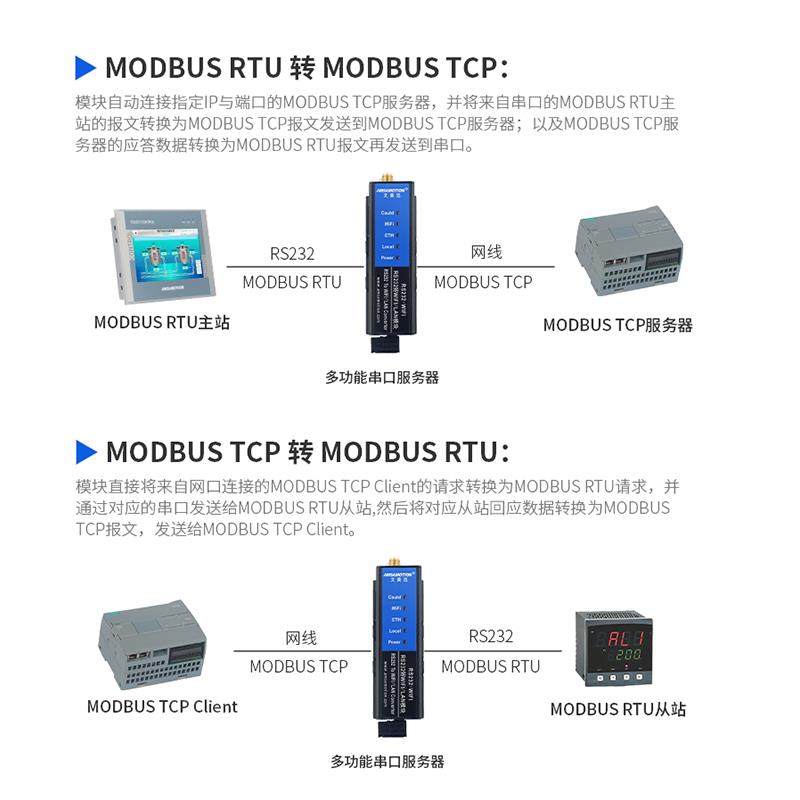 串口服务器RS485/232/422以太网通讯转网口modbus网关RTU/TCP模块
