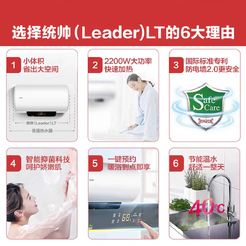 海尔出品统帅LT电热水器电家用卫生间小型洗澡50升租房60升