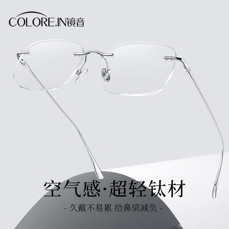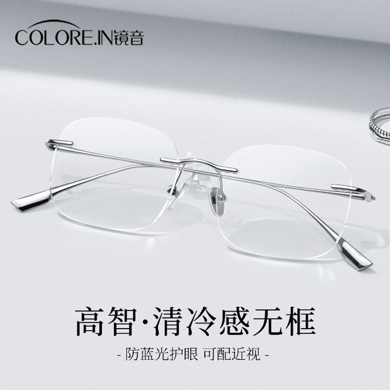目戏无框眼镜女近视可配度数可选蔡司镜片无边框眼镜框镜架23006