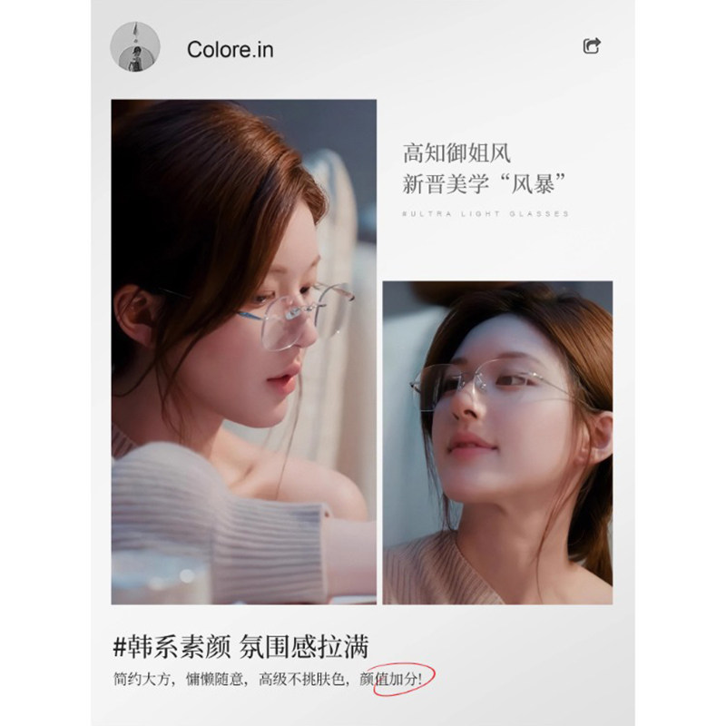 许我许妍同款无框眼镜女高级感近视平光镜无边框防蓝光眼睛架素颜