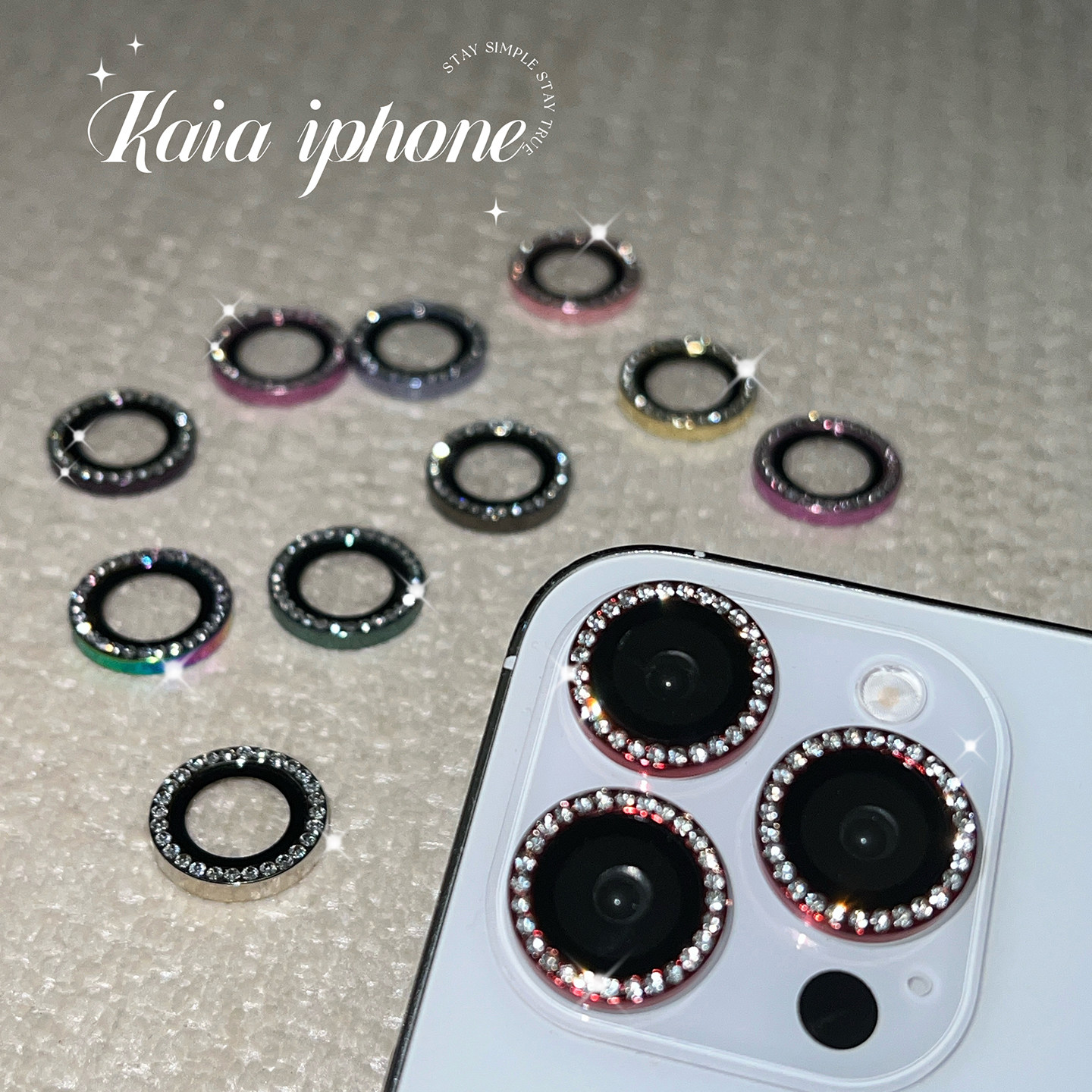 kaia 超闪水钻炫彩适用苹果16promax手机iphone13新款15女14pro细闪11镜头圈16pro钢化镜头膜12摄像头保护膜