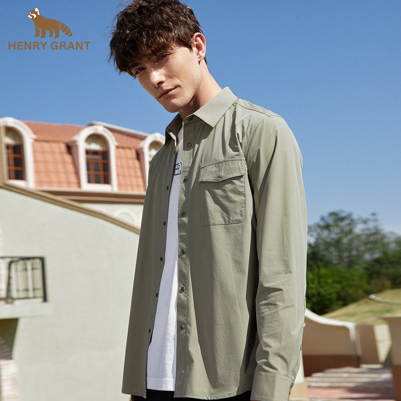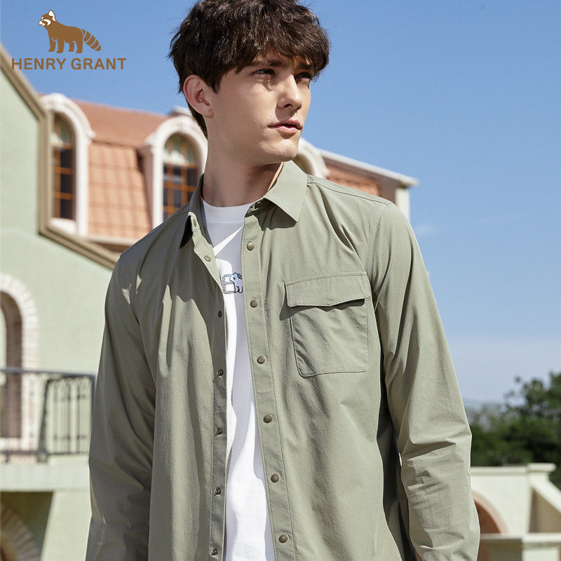 亨利格兰工装长袖衬衫男士2025年春秋高街时尚薄外套休闲百搭衬衣