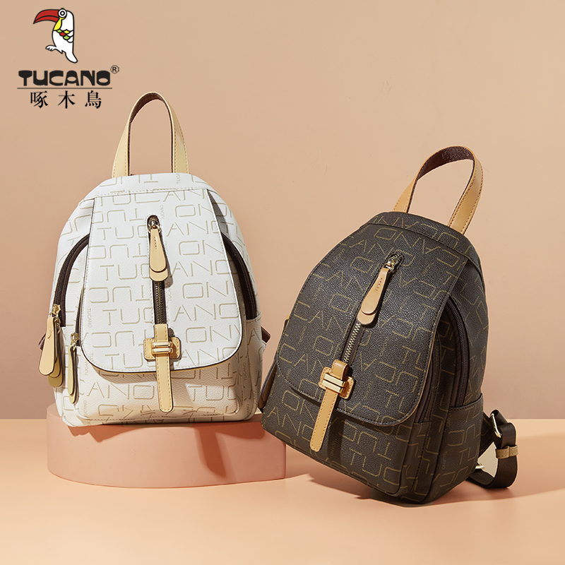 啄木鸟双肩包女2025新款书包百搭时尚潮流大容量高级感印花后背包