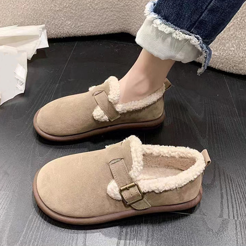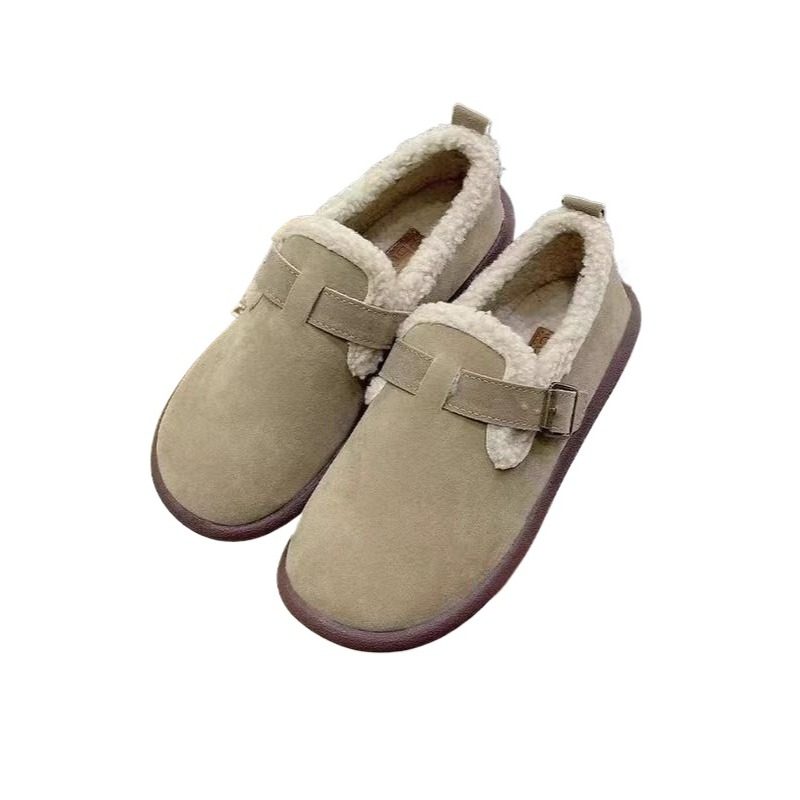 勃肯鞋女加绒女鞋2024年冬季新款豆豆鞋平底毛毛鞋孕妇鞋棉鞋圆头