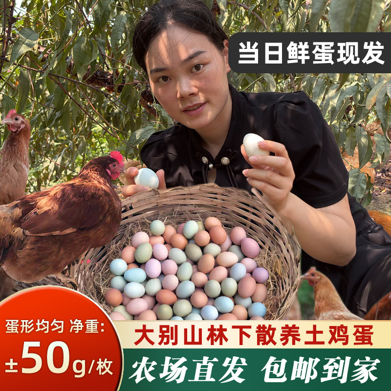 正宗散养土鸡蛋新鲜农村野外月子孕妇本绿乌柴鸡蛋虫草笨鸡蛋50枚
