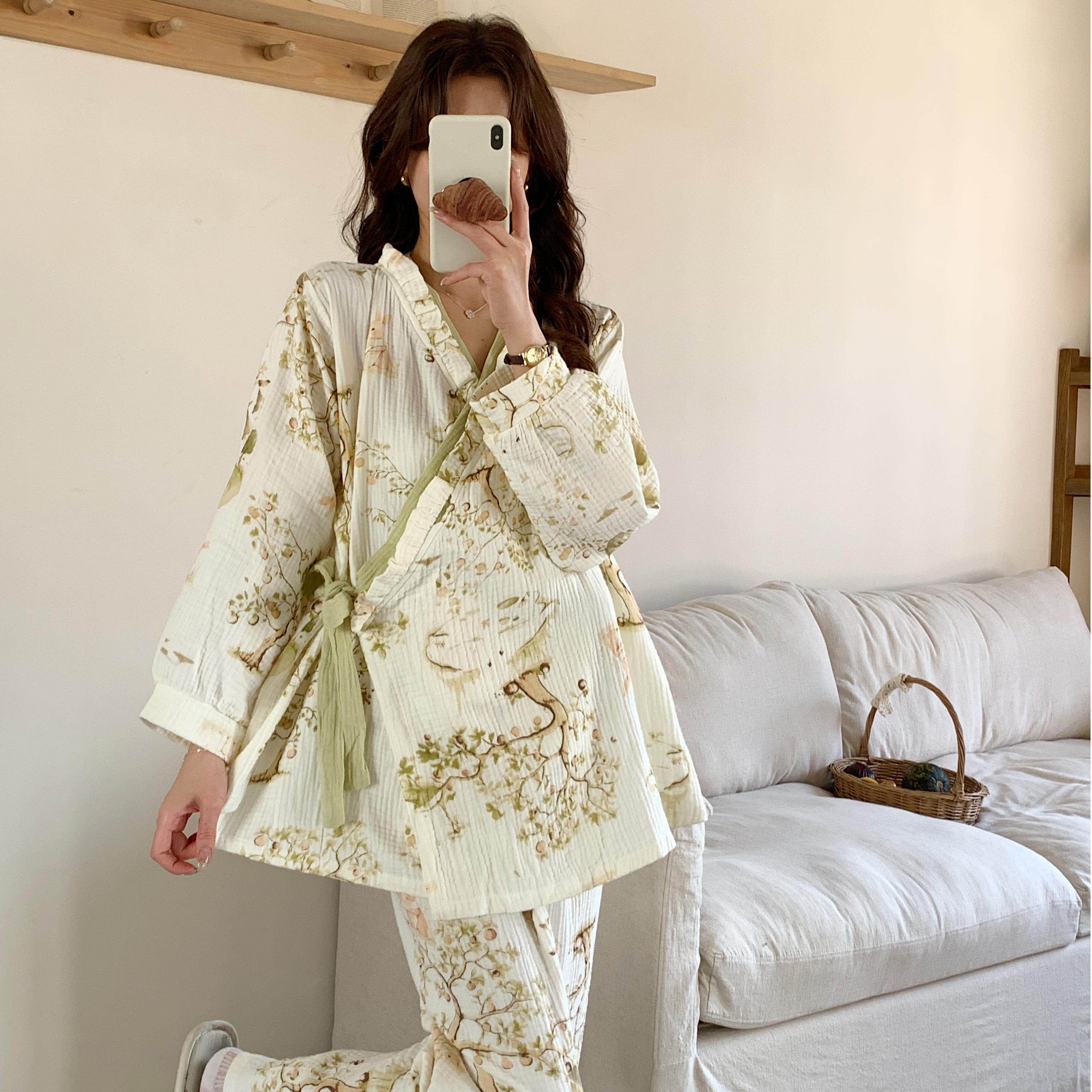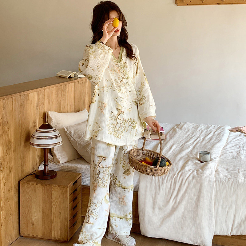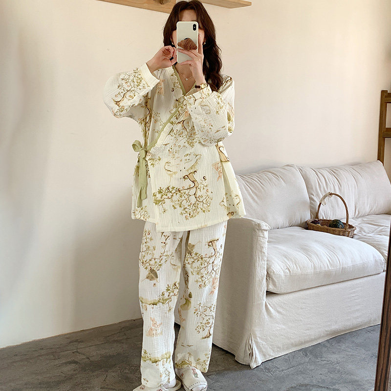 带胸垫奶香风纯棉月子服春秋季产后产妇孕妇睡衣秋冬款哺乳喂奶衣